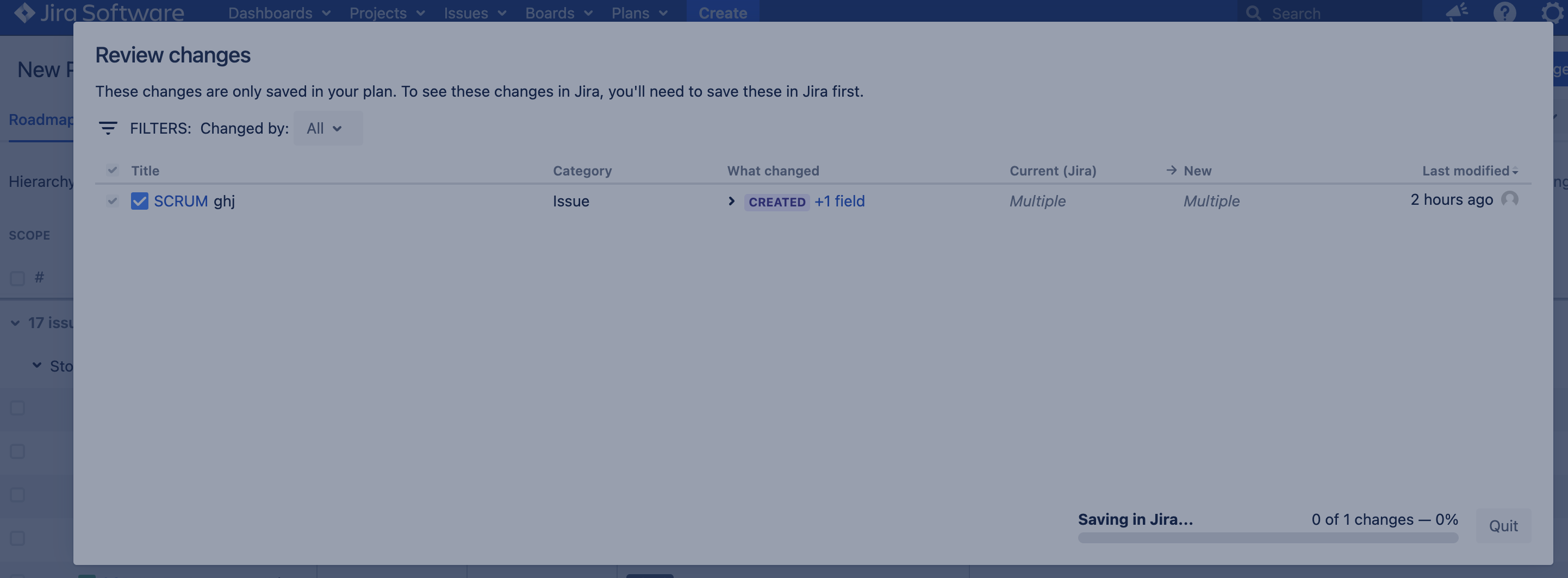 Advanced Roadmaps for Jira New Jira issues created in a plan can not be saved or committed
