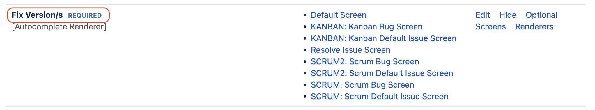 The Set Required Fields screen is not showing the same list of mandatory fields as in the regular Create Issue screen: