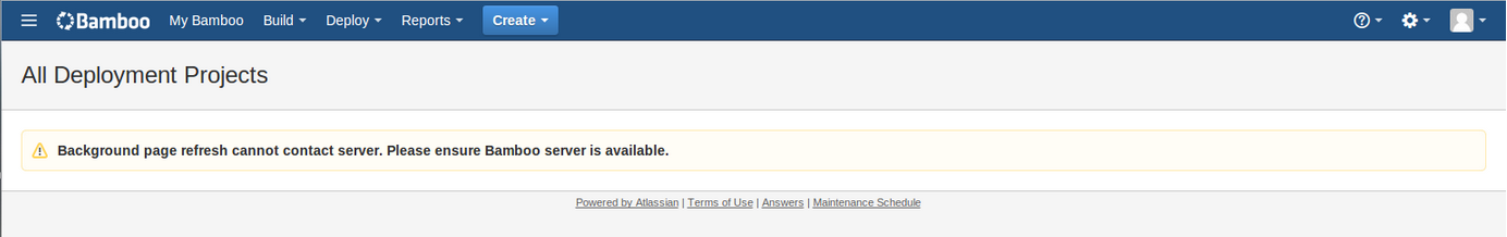 "Background page refresh cannot contact server." error thrown when accessing deployment projects