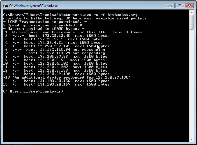 mturoute.exe -f -t bitbucket.orgYou should see output similar to the below: