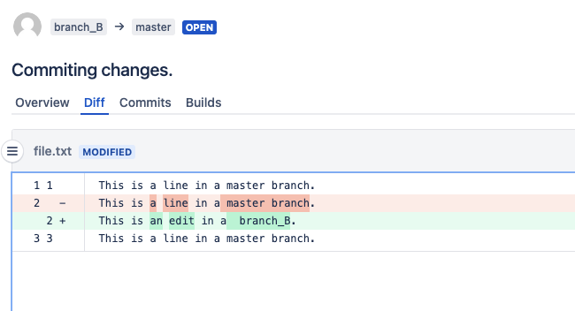This is a line in a master branch.In the last step, let's create three Pull Requests in both Bitbucket 6.10 and Bitbucket 7.15: