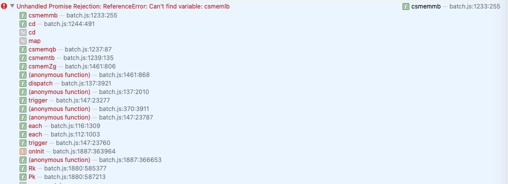[Error] Unhandled Promise Rejection: ReferenceError: Can't find variable: csmemlb