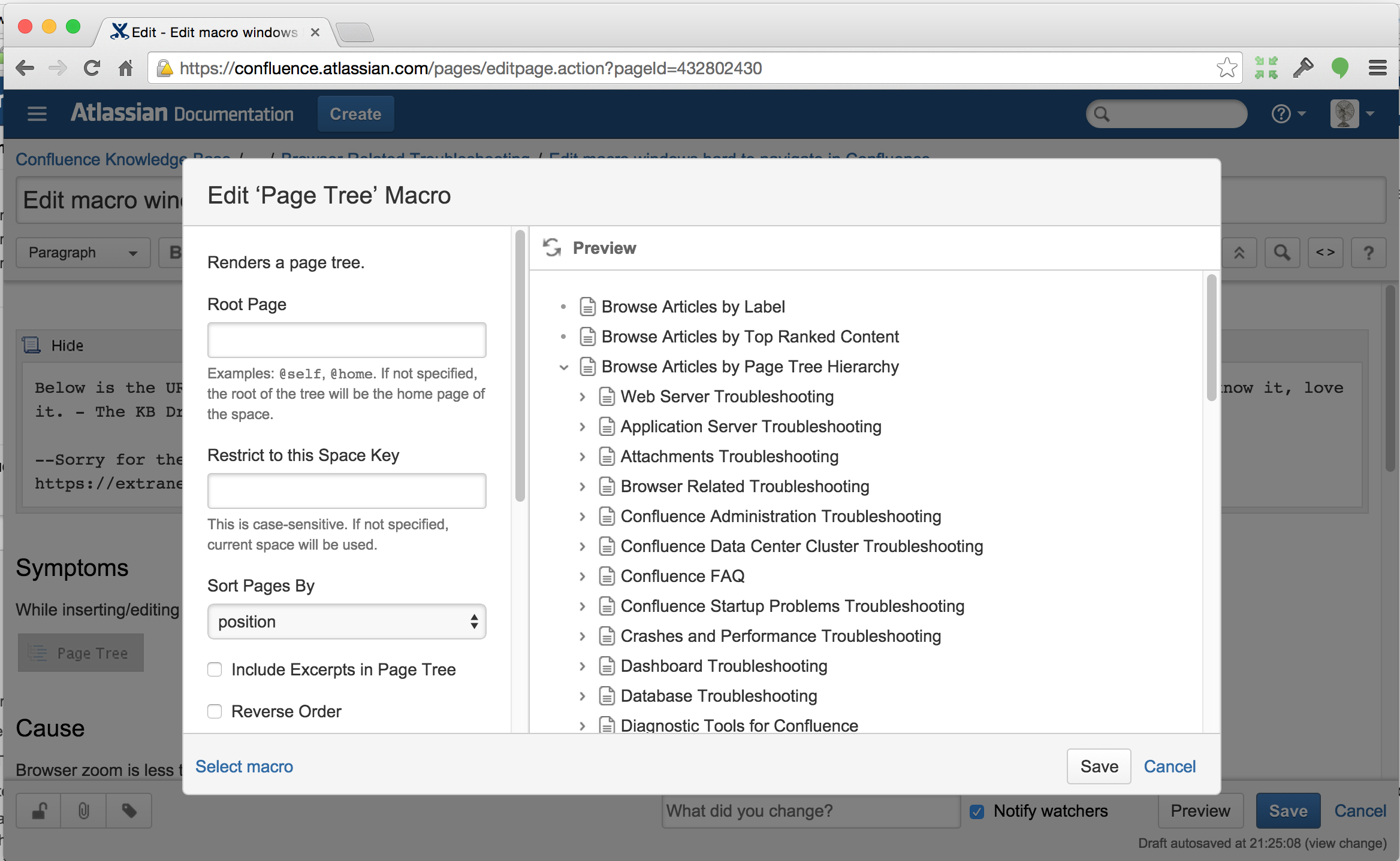 While inserting/editing a macro the window is cut off in places and hard to scroll in. In the example below, when Chrome is set at 200% zoom, the macro browser's right-hand side scroll bar is no longer visible: