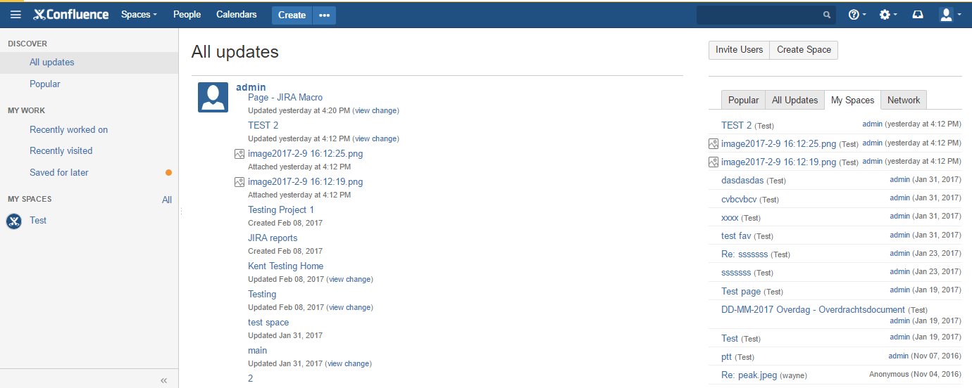 Which is different than the old dashboards that are available in Confluence 5.8 and below, and does not include the Recently Updates tab that has a tab which only contains Recently Updated content from Favourite Spaces and Pages only: