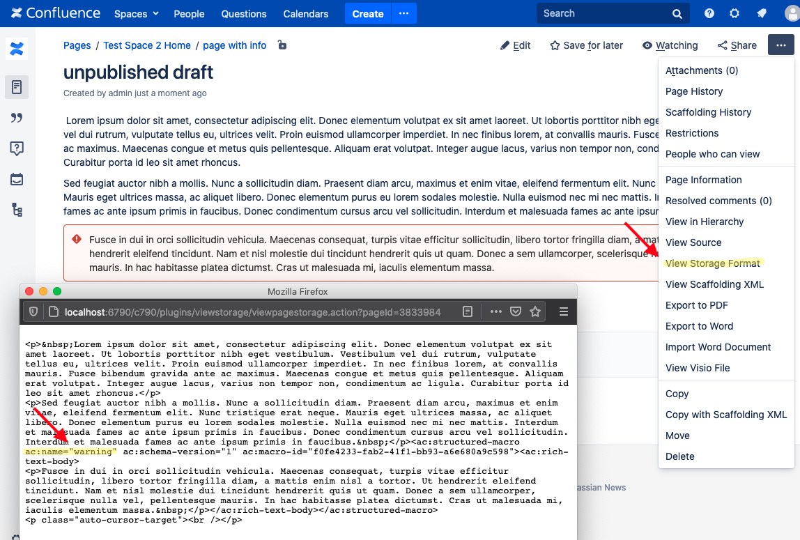 The image below shows an example with the warning macro.
