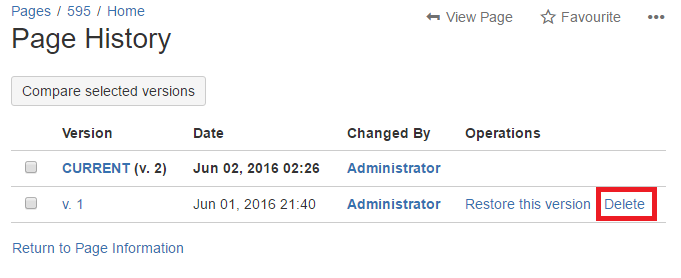 How to hide the 'Delete' button in the Page History section