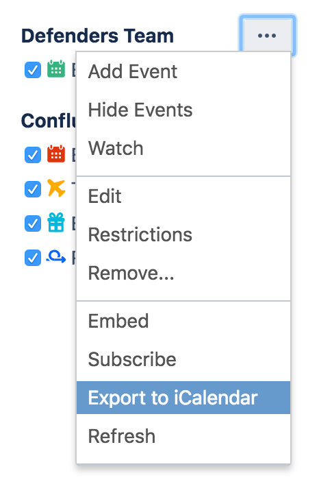 2 - Use the 3 dots menu at the top right corner of your Calendar to select the option Export to iCalendar