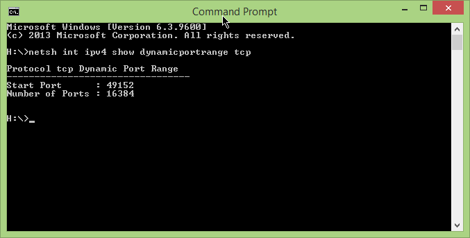 netsh int ipv4 show dynamicportrange tcpExample Result showing 16384 total available ephemeral ports: