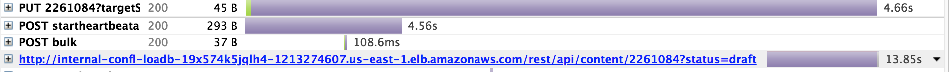 Nothing unusual appears in Tomcat or Confluence logs server-side to suggest that the application is slow to process the request, even when Page Request Profiling is enabled.