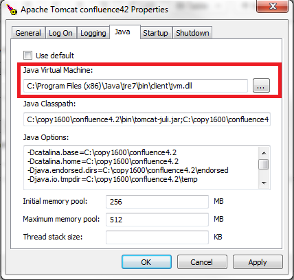 [2013-02-27 09:44:23] [error] Failed creating java C:\Programme\Atlassian\Confluence\jre\bin\server\jvm.dll