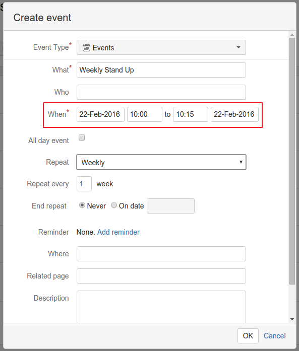 When first using Team Calendars, you are requested to confirm your time zone. This is based on the Server Default.