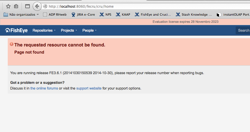 2015-01-19 14:32:44,138 DEBUG [qtp1243456071-6541 ] fisheye ProfilingServletFilter-logRequest - end request in 26ms GET /fecru/cru/home sessionid=1710ohpfu4q7f8kcn45czgunc 404And the following is displayed within the UI;
