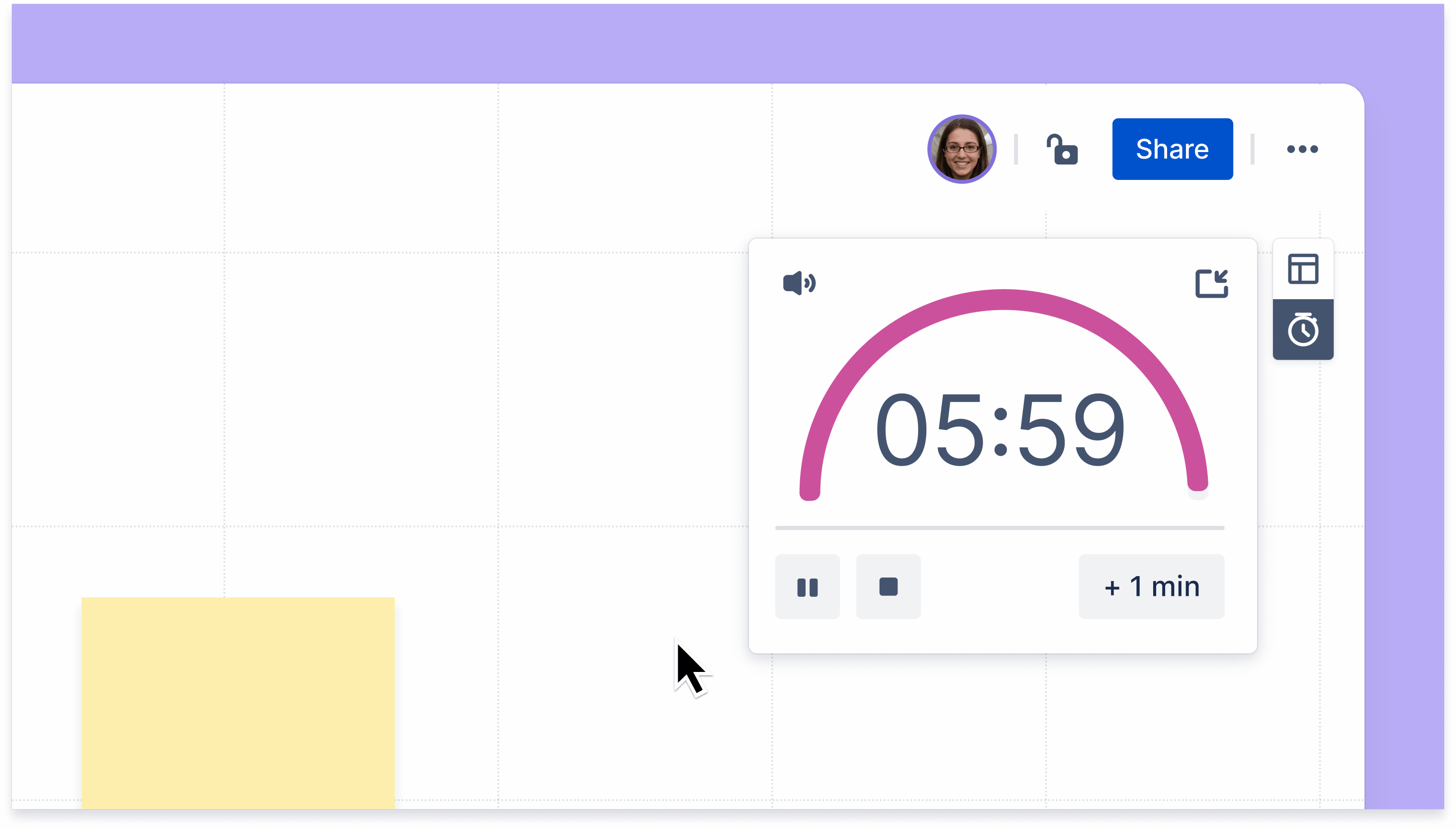ホワイトボードにいるユーザーなら誰でも、タイマーを開始、停止、一時停止、または時間を追加できます。