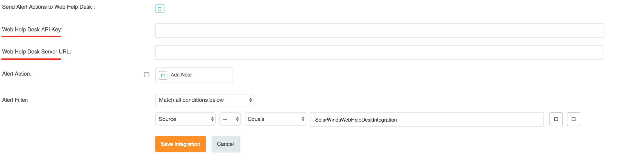 SolarWinds Web Help Desk 統合を追加する