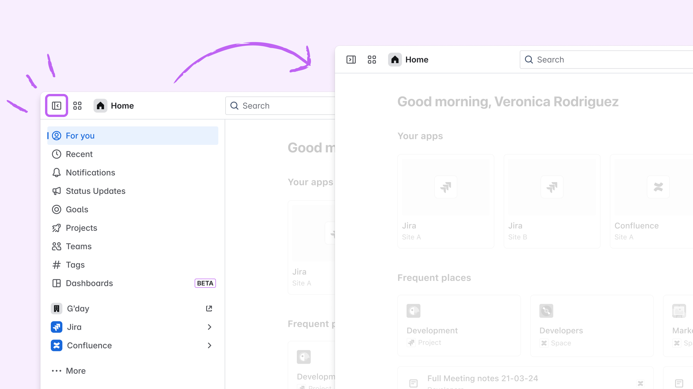 Navigate Atlassian Home from the sidebar.