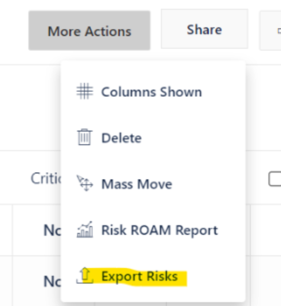 Some Jira Align users are unable to see the "Export Risks" option under the “More Actions” button, when in the 'Risks' list / grid page.