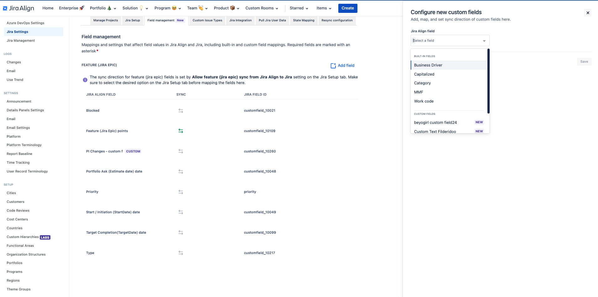 Jira Align - "Why?" Field is missing to be mapped in the Field Management