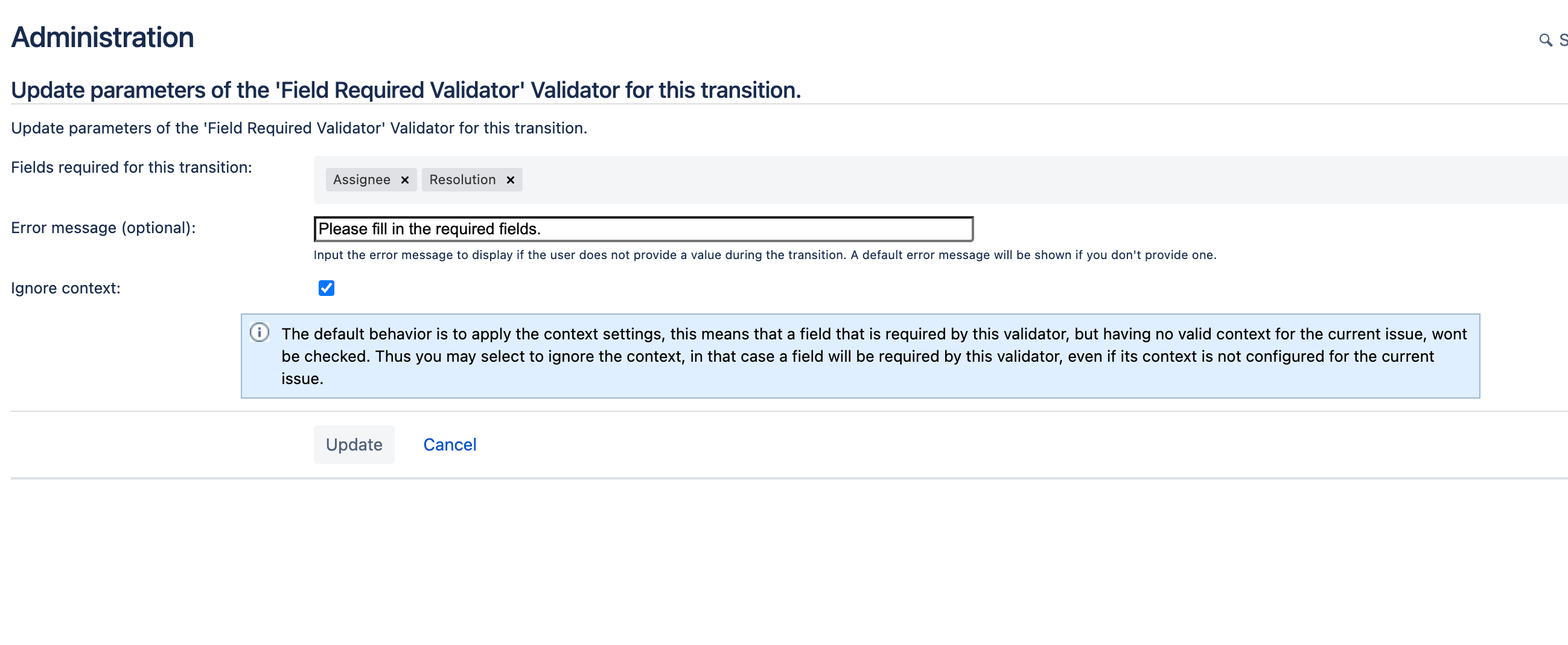 Fields required for this transition: Enter the fields that must be mandatory during the issue creation. We can create multiple fields if required.
