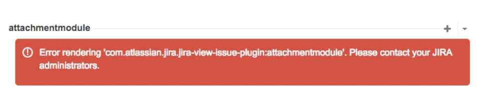 2015-01-15 19:58:10,910 http-bio-8080-exec-18 ERROR sysadmin 1198x51x1 xk7j1j 127.0.0.1 /browse/ISSUEKEY-1 [jira.web.component.ModuleWebComponentImpl] An exception occured while rendering the web panel: com.atlassian.jira.jira-view-issue-plugin:attachmentmodule (null)