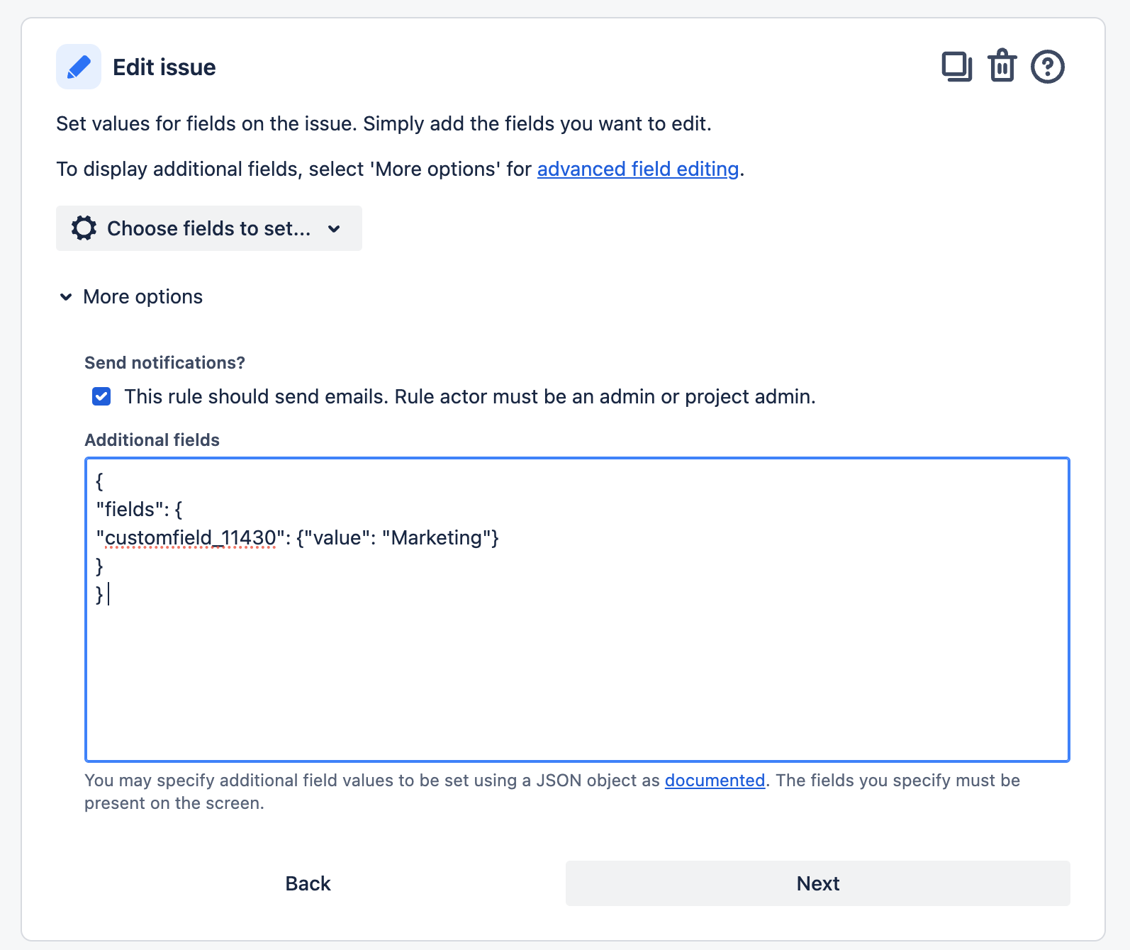 This article provides guidance on how to set the Category field to a specific value or copy it from the trigger issue using an automation rule in Jira.