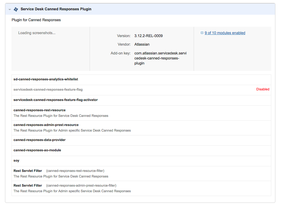 Check if any of the Service Desk Canned Response Plugin modules is disabled in the Manage add-ons page by following the steps below: