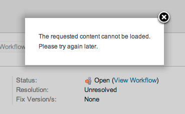When you click on a the "View Workflow" link in an issue view, a pop-up with an error shows instead of a map of the workflow