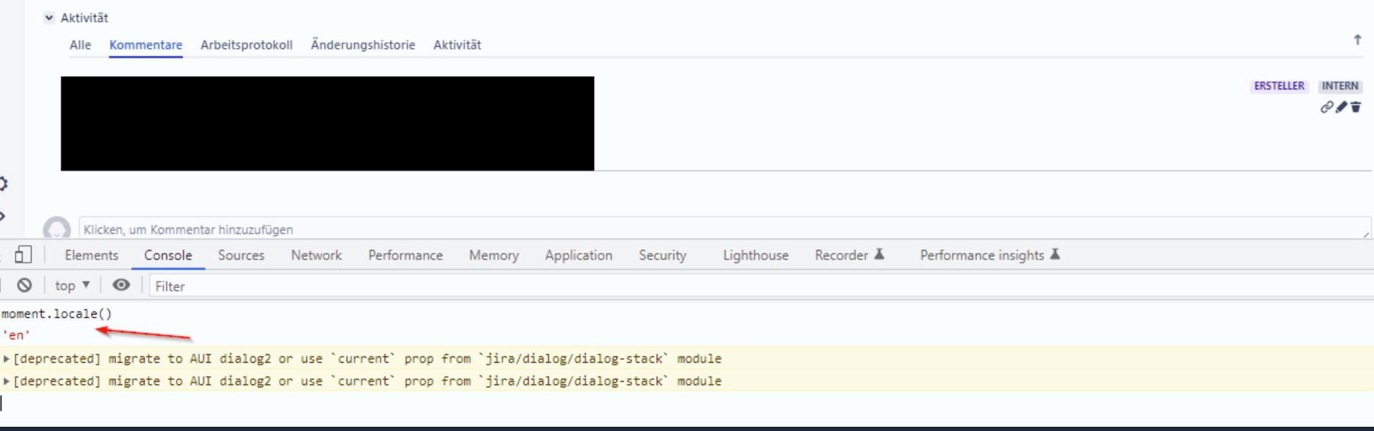 When using Jira with the German language everything works as accepted but when the addon runs it is not able to pick the correct language translation as it is checking moment.locale set in the browser and in the issue page it is set to "en" value.