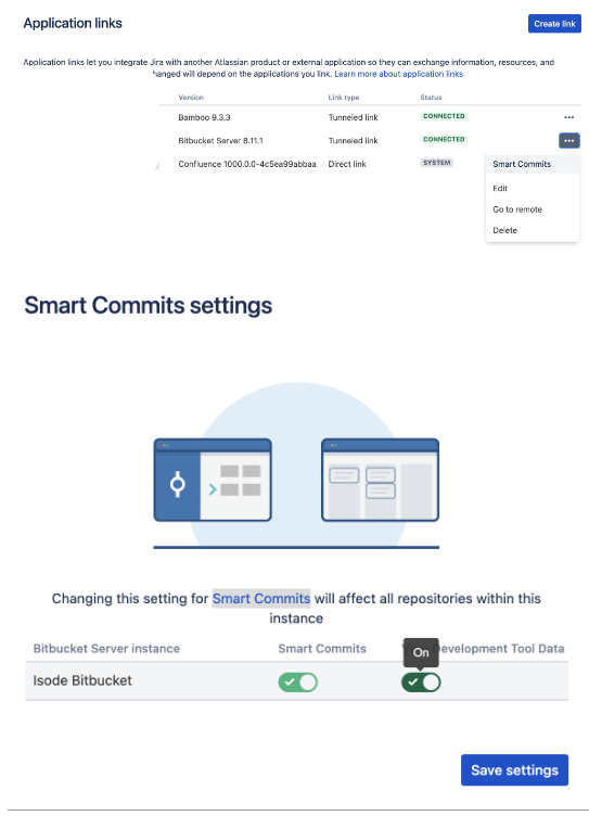 When there is a connection to the Bitbucket server via both channels i.e. App links and Oauth branch creation shows both the options