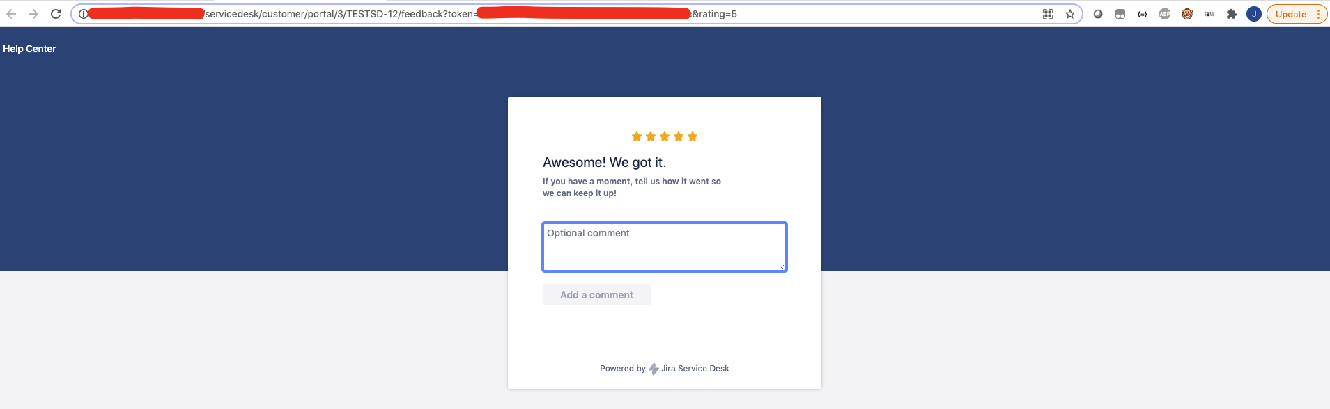 The page should load and should show the 5 star rating along with a test box to add a comment: