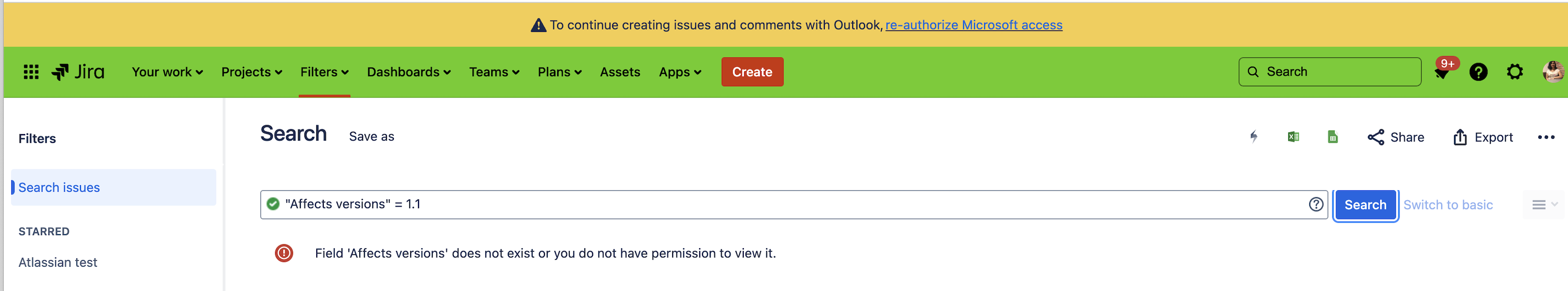 Error arises when using Affects versions in JQL.