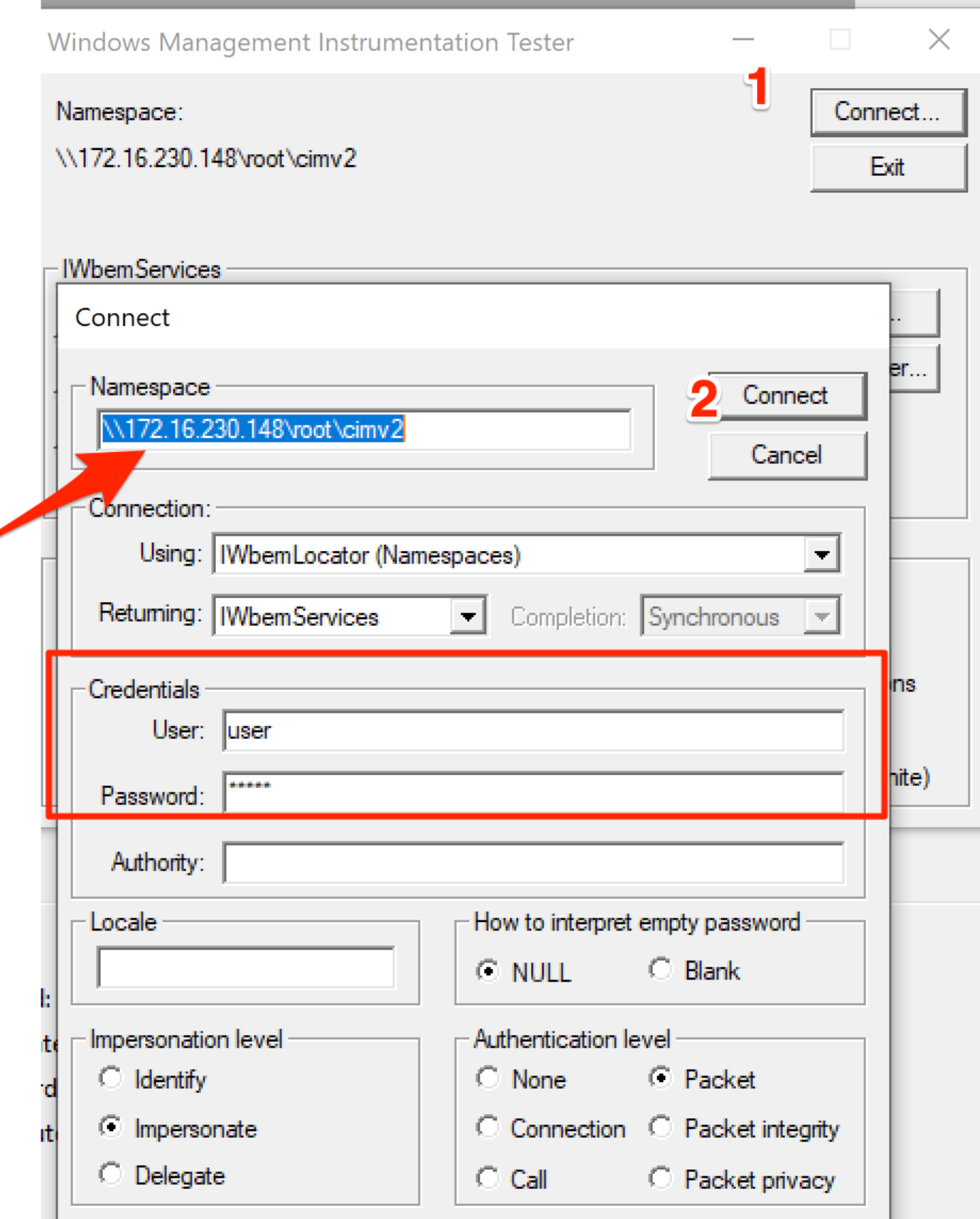 Test WMI connectivity with wbemtest.exe tool