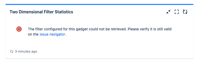 The filter configured for this gadget could not be retrieved. Please verify it is still valid on the issue navigator.