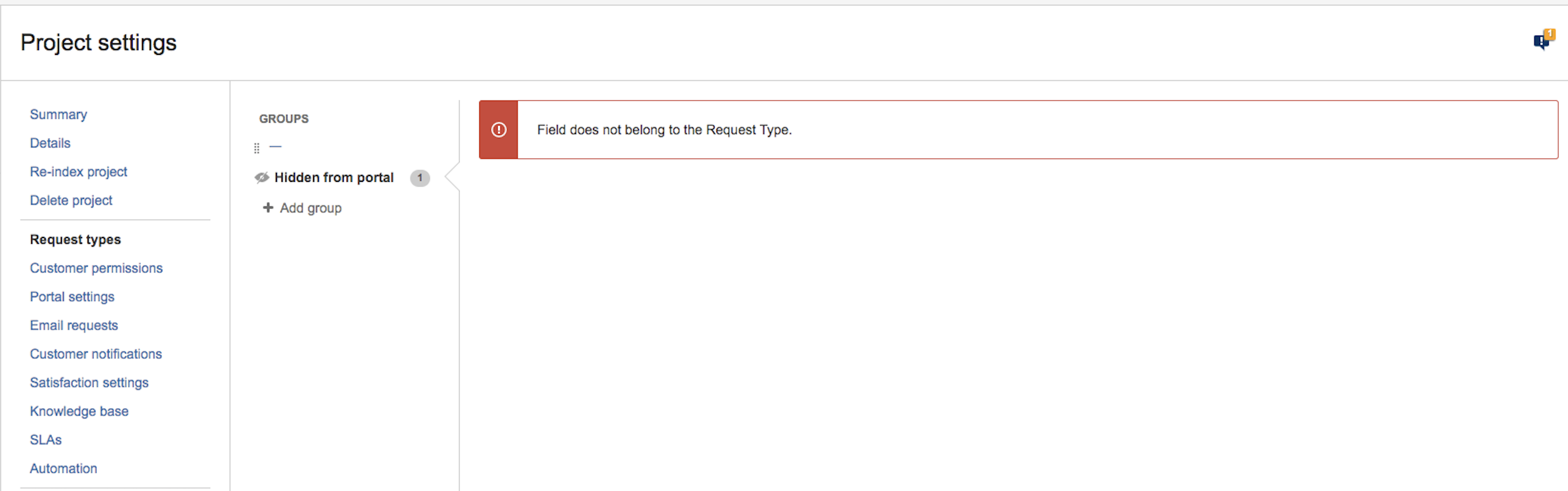 Getting the error "Field does not belong to the Request Type." when clicking on "Edit fields" to edit a Service Management Request Type
