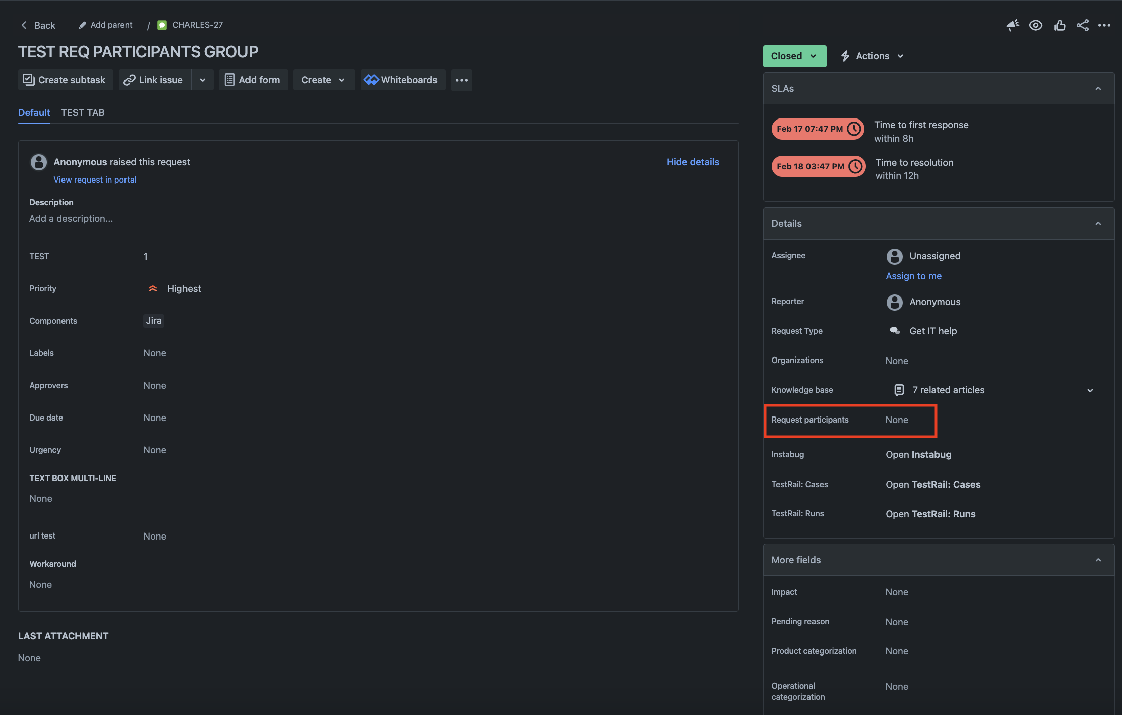 You may need to automatically include all members from a group as request participants in customer requests. It's not possible to select a group directly, but this article offers a solution to use automation to automatically add all members of a group to customer requests.