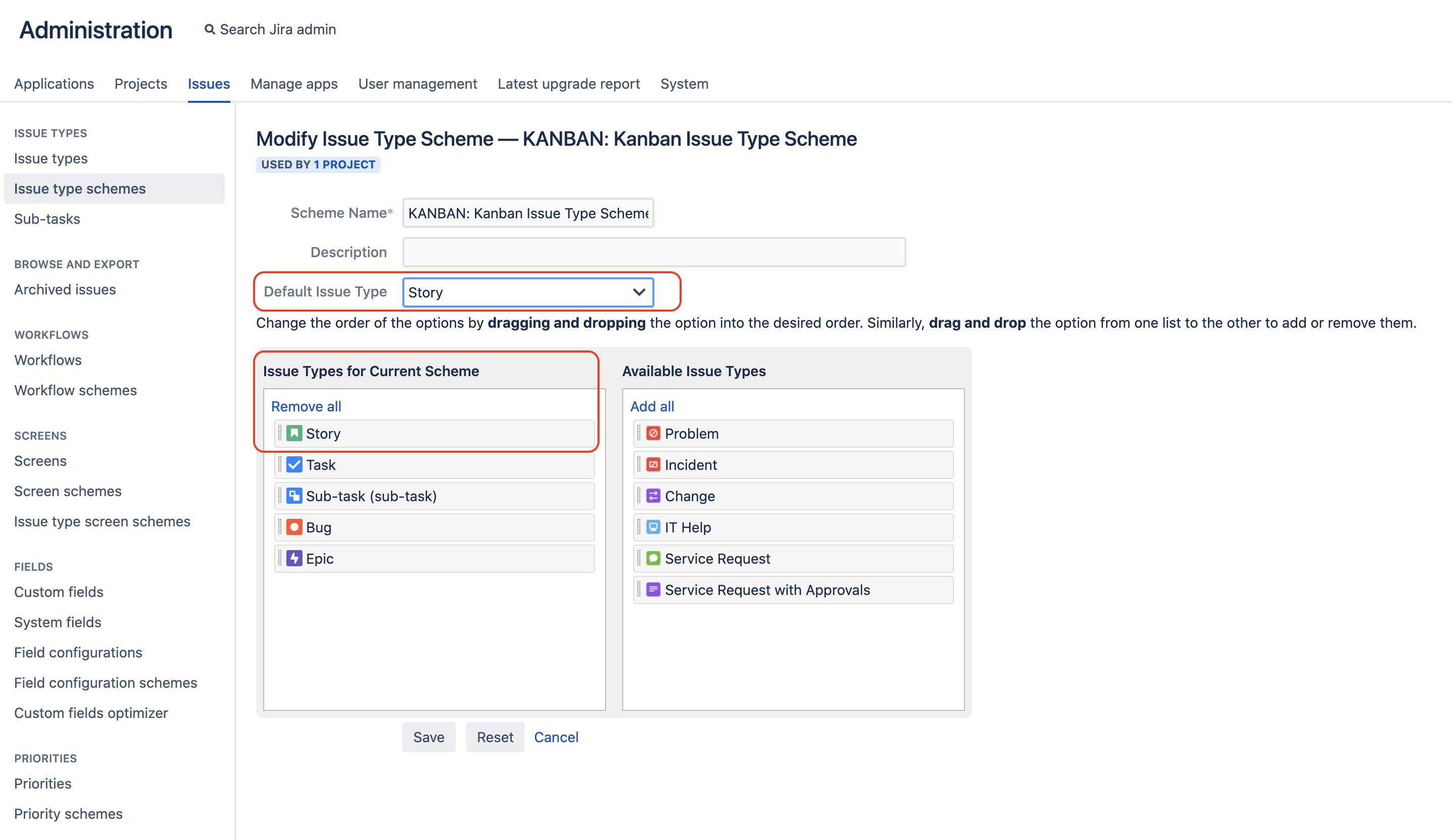 ⚠️ Please note that the default issue type setting only takes effect on the first time an issue is created in a Jira project