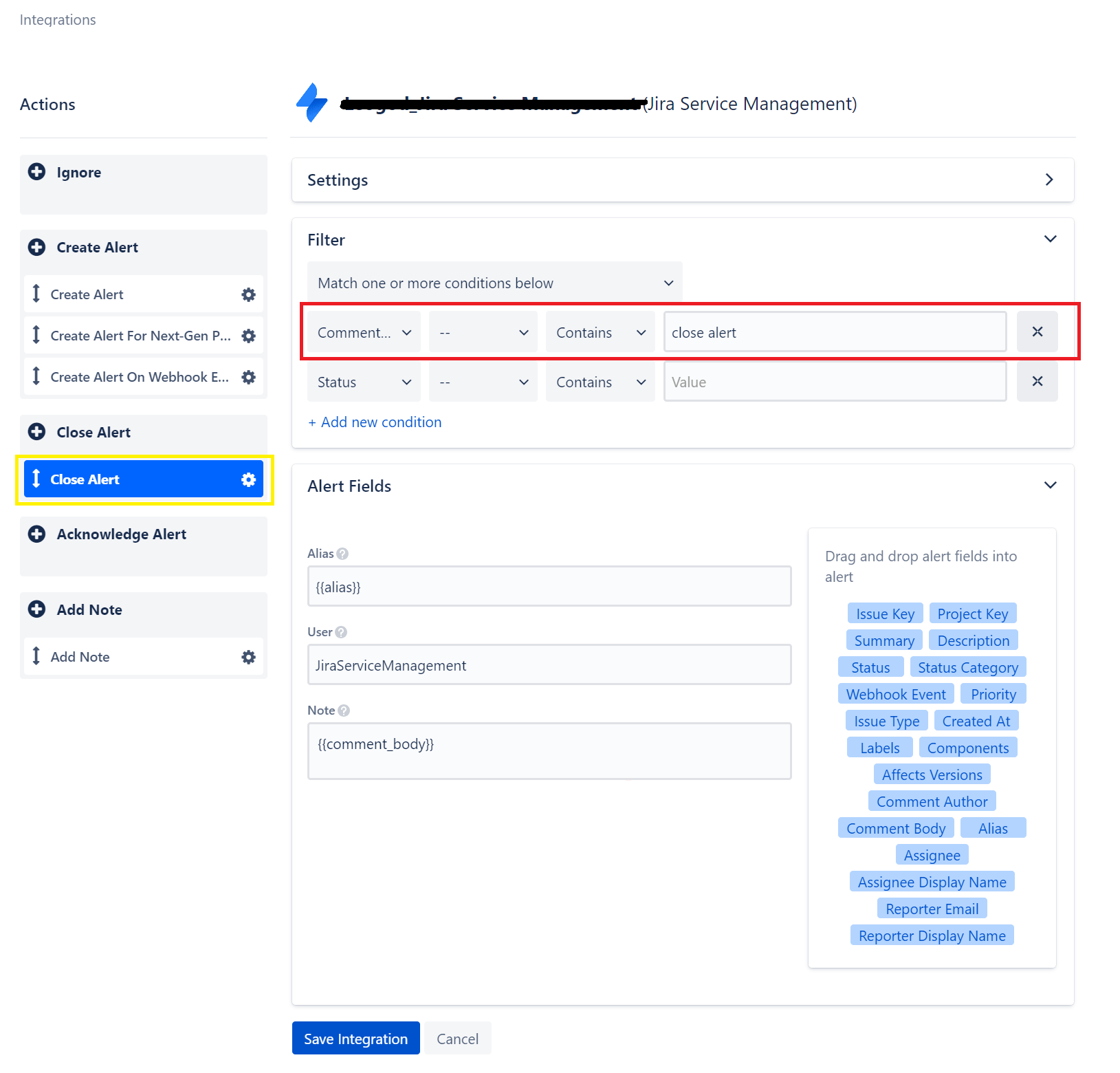 If using the “JIRA Service Management (NEW)” integration: