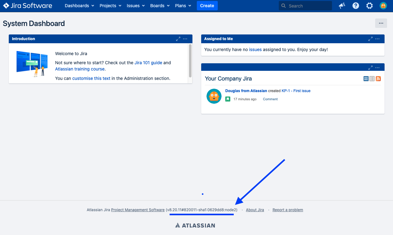 Check the footer and locate the text Atlassian JIRA Project Management Sofware (vX.X.X#XXXXX-XXXX:XXXXXXX:YOUR-NODE)