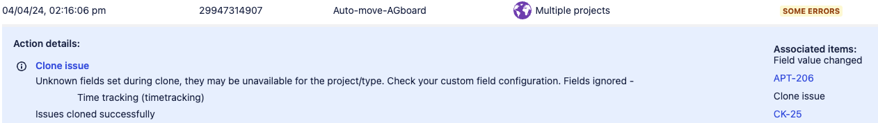 When editing the "Original Estimate" field using Automation in the Clone or Create action the issues get created but you may encounter the below error: