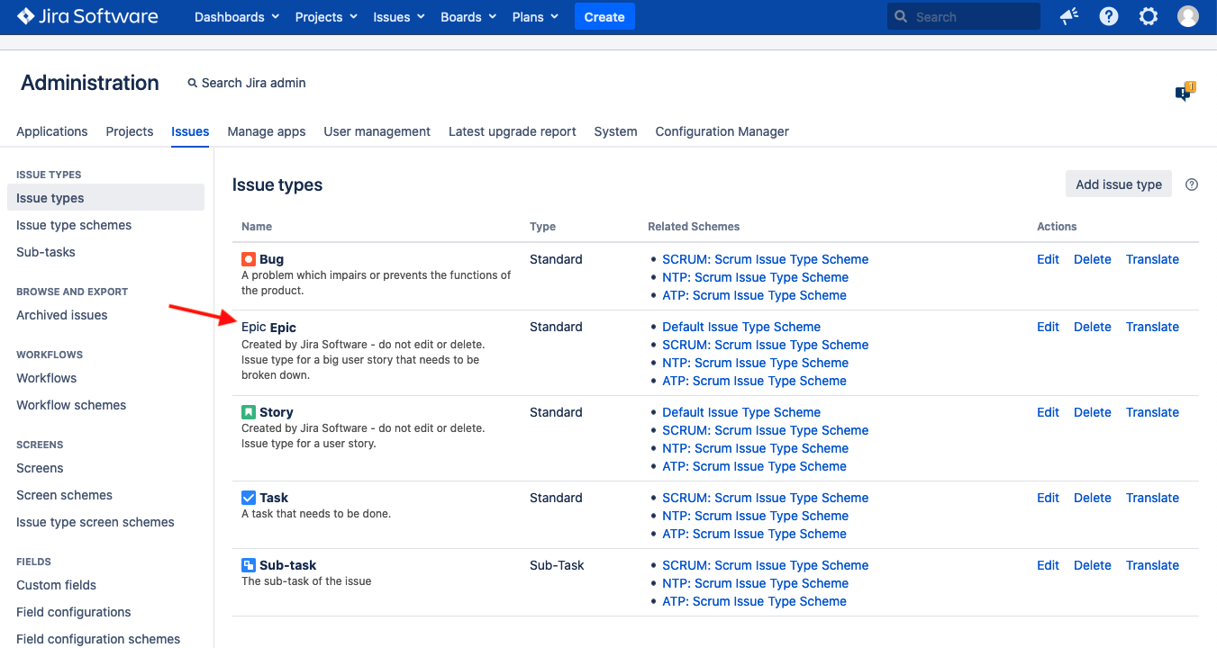 You will be sent back to the Issue types screen with the changed avatar for the Epic issue type.