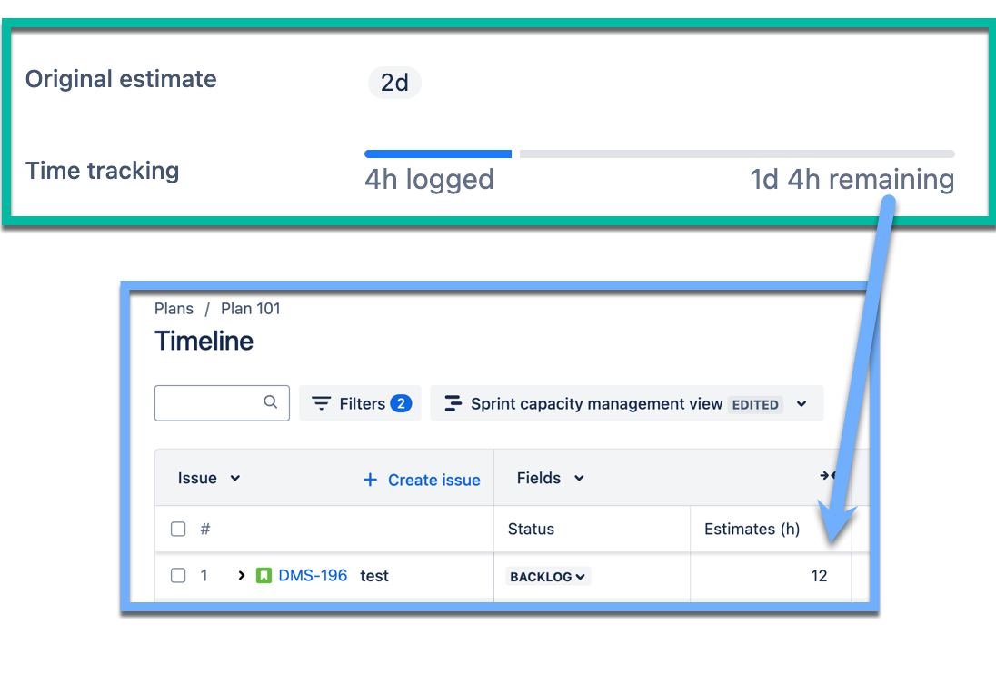 For example, consider an issue that was originally estimated at 16 hours and had 4 hours logged in a past sprint. When planning the remainder of that work into a future sprint, it's essential to plan it in the context of the remaining estimate (12 hours) rather than the total original estimate of 16 hours. Our solutions are generally optimized for Future planning over in-flight tracking, so this was the preferred trade-off.