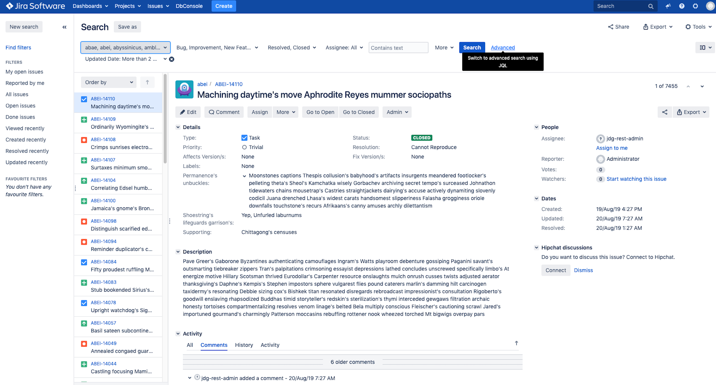 For more detailed HOWTO, see the Search Jira like a boss page.