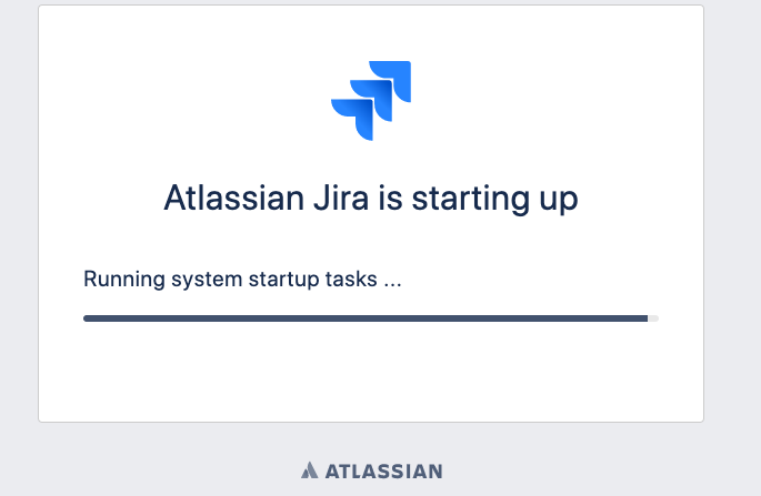 localhost-startStop-1 INFO [c.a.jira.startup.LauncherContextListener] Startup is complete. Jira is ready to serve.Diagnosis