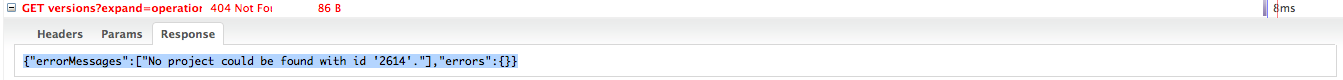 This problem happens because JIRA currently allows both the Project Key or Project ID in the REST API call (/rest/api/2/project/{projectIdOrKey}/versions). As the Project Key only contains numbers, the REST API assumes it as the Project ID, and consequently cannot find a project with that ID, which causes the 404 error to happen.