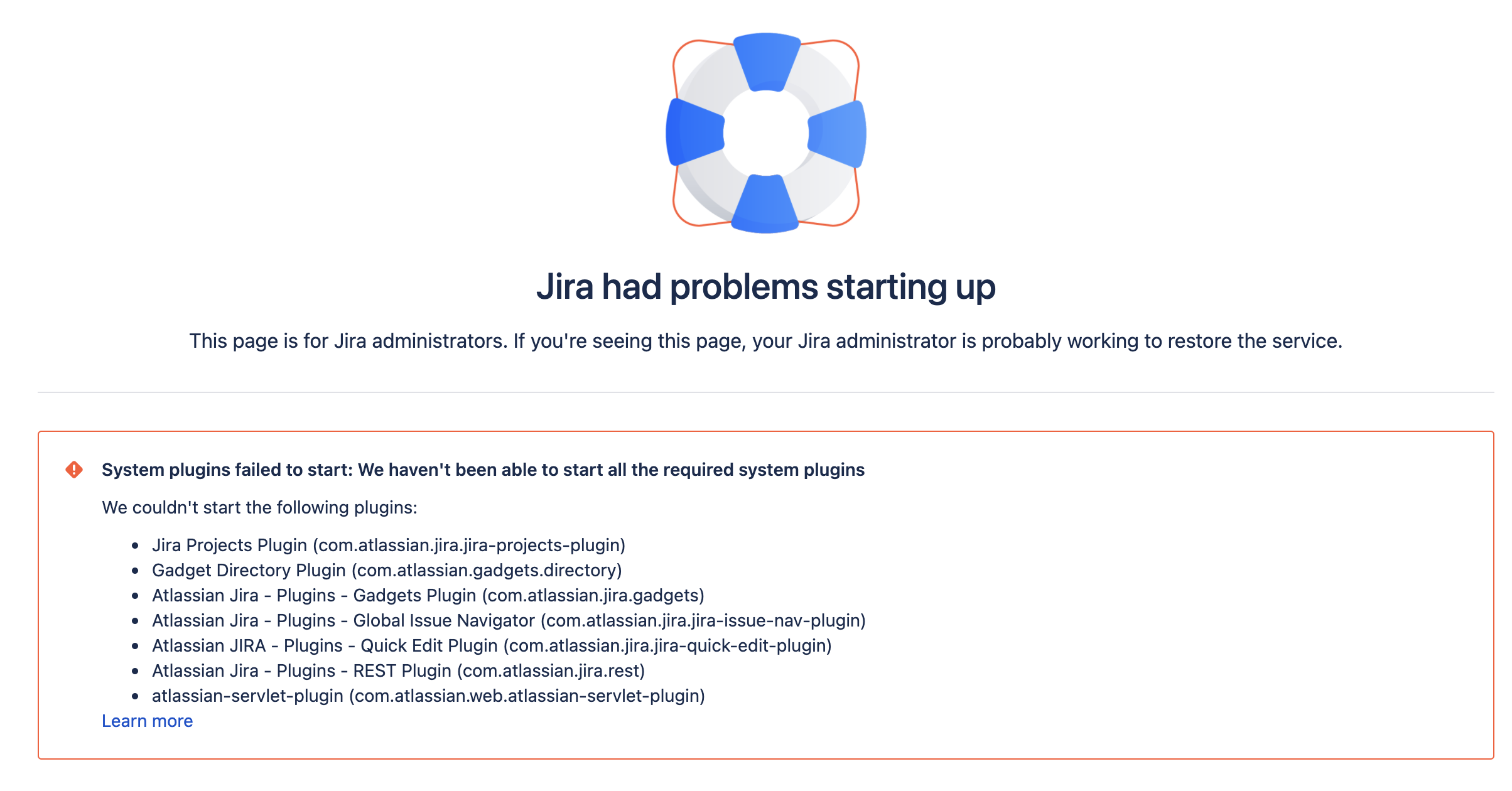 Several factors can contribute to Jira failing to start up and report plugin failures. This article lists the most common causes and the respective solutions.