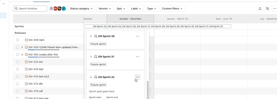 Project timeline shows all the sprints mixed together and can't set the sprint to the issue using drag & drop in Timeline