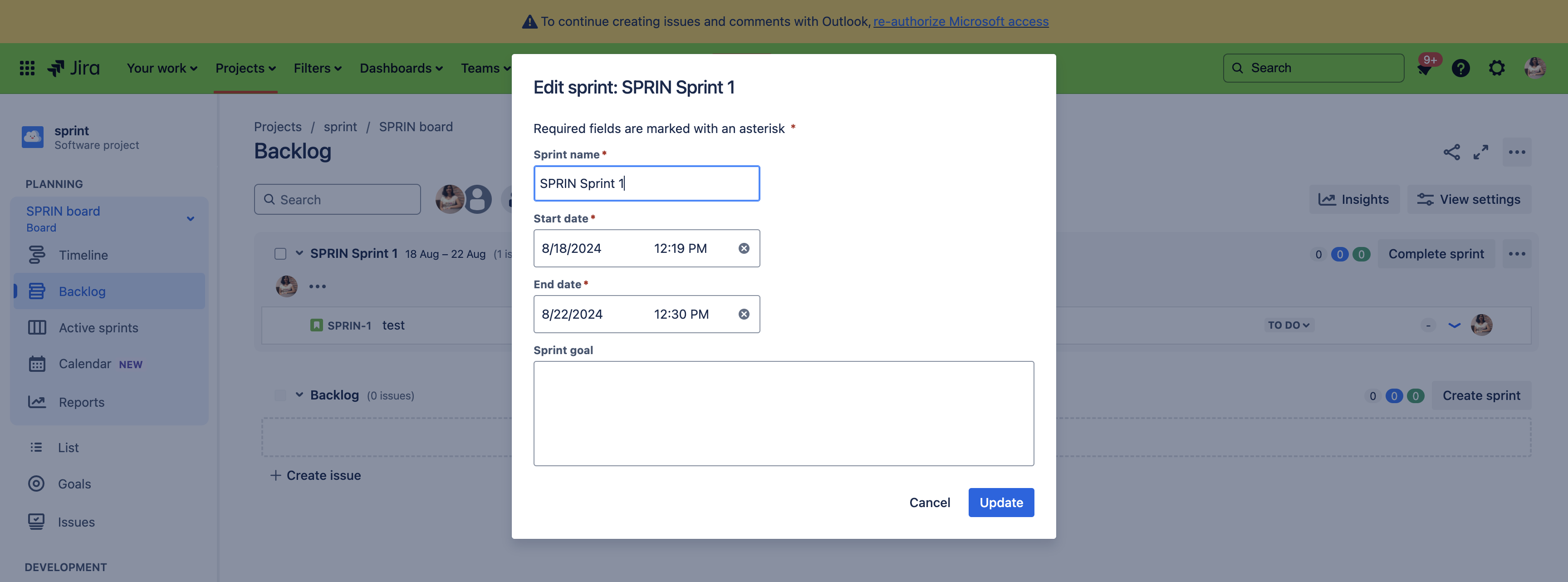 Remaining time for sprint completion date on the Scrum board is not shown.
