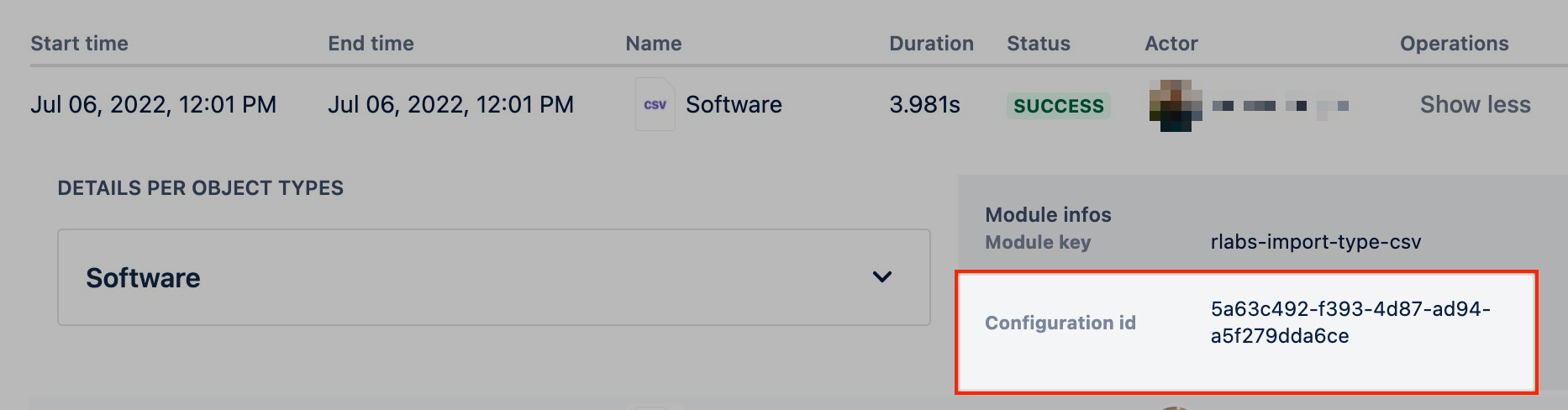 To find the import configuration ID, go to import history and find the configuration ID for the corresponding import configuration: