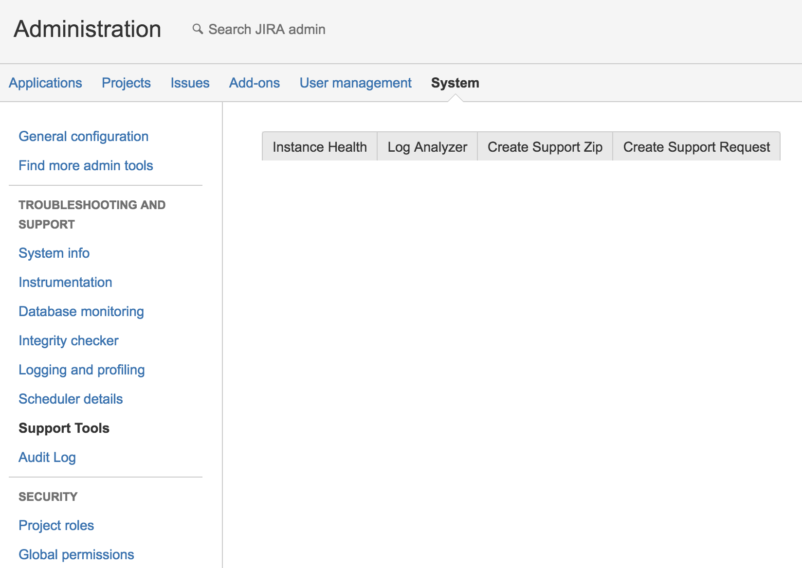 JIRA Support Tools will not able to load besides the tabs.