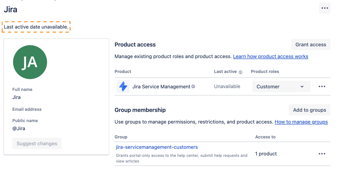 Occasionally, the Last Active or Status information on the User Management area (<sitename>.atlassian.net/users) is not updated for Jira Service Management Customers with an Atlassian Account, despite users having logged in through the customer portal and raised requests.