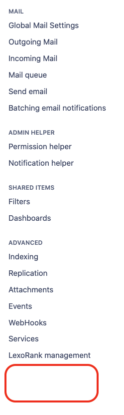 The Oauth 2.0 option should be located under the Lexorank management option in ⚙ > System. If this option is missing as shown in the screenshot below, then Root cause 1 might apply: